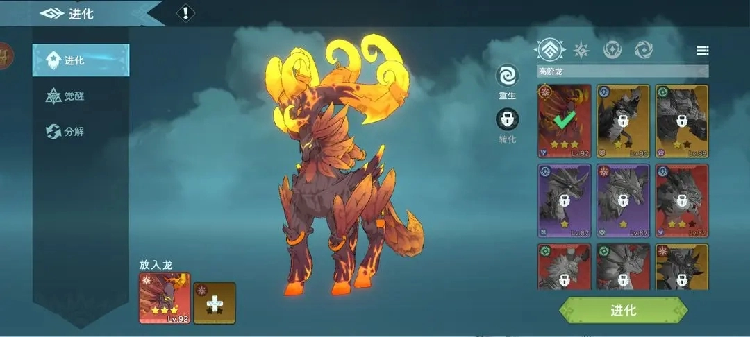 若以雅驯之辞表述,便是每条幼龙皆有其潜能所达之极致,当其现有能力臻于此限,便需藉由进化以擢升其品阶,方可为后续之进阶奠基。详而言之,此过程实乃“吞噬灵材”之举。其中,于低星阶段,所需灵材必为与待进阶之龙同种类者;而一旦晋至高位星阶,则仅需同属性且同星等之任意灵材即可。