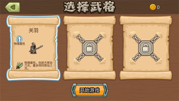 挑选你想要玩的武将,一共有三种武将可以选择,