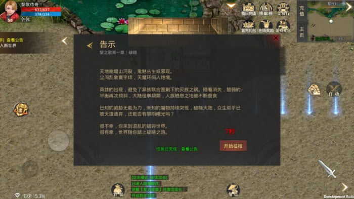 任务一:查看公告。公告主要简要介绍了黎歌传奇的故事背景,在这个世界里,玩家默认身份为破晓者,他们的使命是为黎明而战。