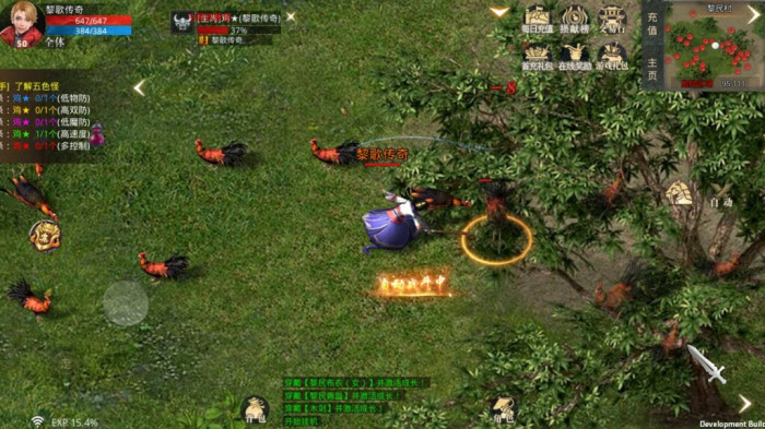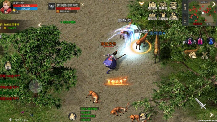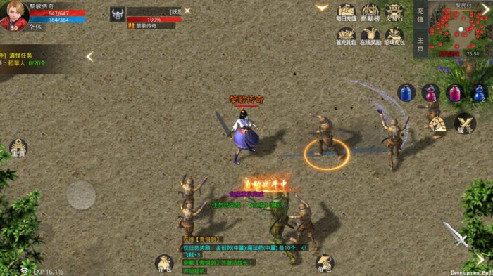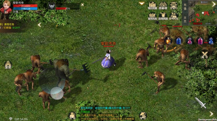 任务二:认识五色怪。同一种外形的怪物有蓝、紫、黄、绿、红这五个主要颜色,除此之外还有一个隐藏的黑色。五色怪和玩家的职业存在相生相克的关系:战士攻击蓝色怪、法师攻击紫色怪、道士攻击黄色怪时会获得攻击加成;红色怪的恢复能力较强,绿色怪的移动速度较快,黑色怪则是全属性都有提升。这里先对它们做个初步的了解。