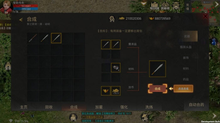 合成系统:游戏内几乎所有装备(药品也包含在内)都支持合成,这是快速获取高级装备的有效途径之一。