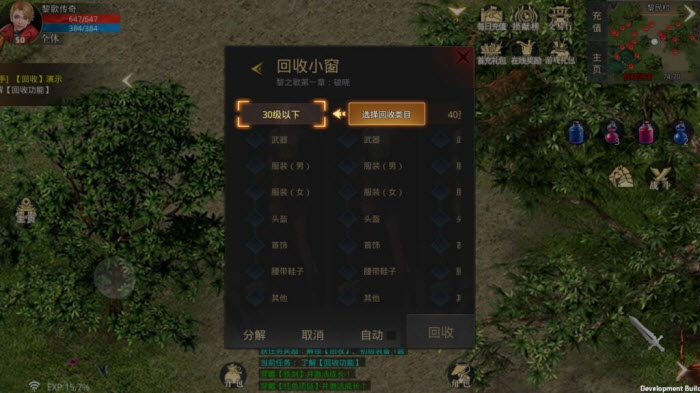 回收:几乎所有装备都能回收,分手动或自动回收