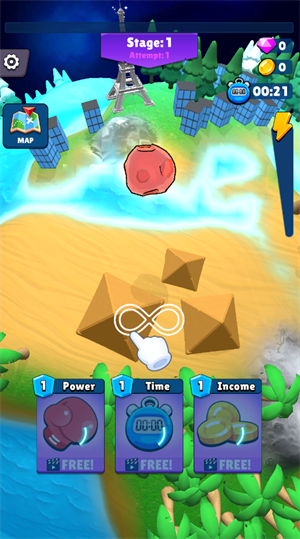 每砸一下星球就能获取一部分素材,用来构筑属于自己的星球。