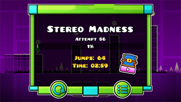 玩家能够自定义专属的方块形象,解锁各类不同的图标与颜色,让游戏角色更具个性。几何冲刺不仅是免费的,而且上手简单,不过要想精通则需要大量的练习和技巧。