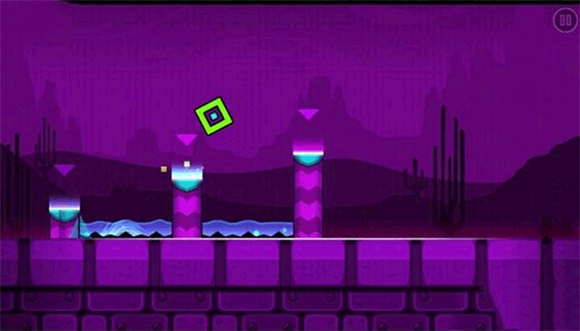 1、第一种场景里有三个按从低到高顺序排列的桩子:玩家若想顺利通过这个场景,不能在方块跳上第一个桩子后先松开右下角的触屏再点击,也不能采用有节奏的点击 - 松开 - 点击这种操作方式,因为这样是无法过去的。正确的做法是,等方块跳跃到第一个桩子上时,玩家按住右下角的触屏不放开,方块就会完成三连跳,从而跃过这些桩子。