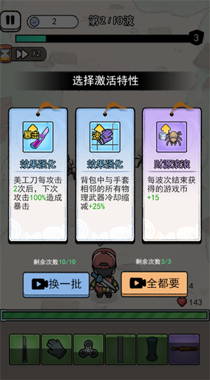 3、在角色升级后,可以选择三种特性,加强自身