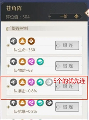 1、星屑连接建议:优先选择能连出5个的组合,其次是4个的;带有百分比属性的优先连接,其中攻击、命中、暴击这几项属性要重点优先;标有1、2、3的组合建议先不连接,它们加的属性比较少,等第二天留着材料去连5个的组合更划算。