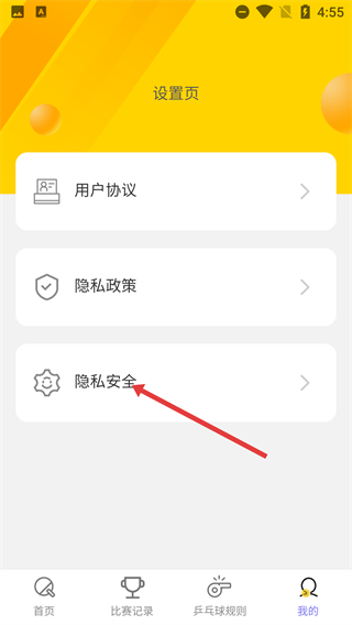 进入【设置页】后,可查看【用户协议】与【隐私政策】,点击【隐私安全】选项,即可进入对应的设置操作界面。