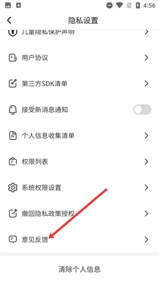 3、在【隐私设置】页面里,能查看【儿童隐私保护声明】和【第三方SDK清单】,点击【意见反馈】即可进入反馈提交界面。