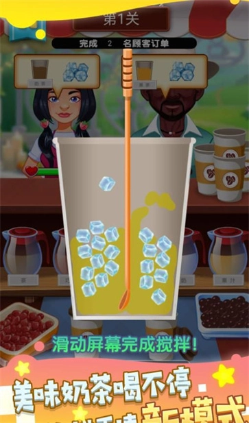 1、化身奶茶店店主,通过精准完成顾客订单、精心制作各类饮品,助力小店逐步发展壮大。