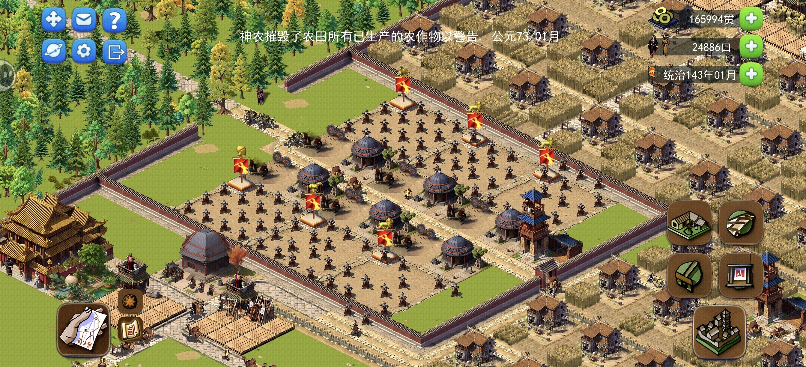 2.军事防御:对士兵开展训练,以守卫城镇、抵御外族入侵,保障城市安全。同时需规划防御策略,修筑城墙与防御塔,进一步确保城市的安全。