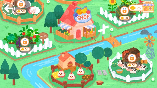 从农场动植物的培育养殖环节,到成熟果实与各类物品的售卖流程,小朋友全程参与这一系列完整的生产过程,从而获得真实又充满趣味的农场经营体验。