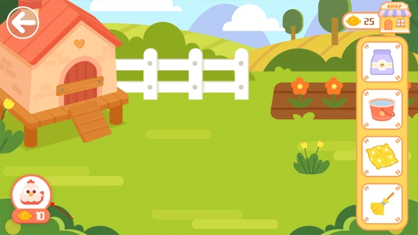 多多欢乐农场是一款卡通风格的休闲种植游戏。它的玩法丰富又有趣,玩家进入游戏后,就能跟着多多一起前往农场。游戏里设有鸡舍、商店、水果蔬菜种植区等多个区域,玩家首先要购买小鸡,通过喂食、打扫卫生等方式精心饲养,等小鸡成熟后卖掉就能获得金币,再用这些金币去解锁和开展其他区域的活动。小朋友们可以在玩游戏的过程中学到不少知识,非常适合他们体验,快来试试吧!
