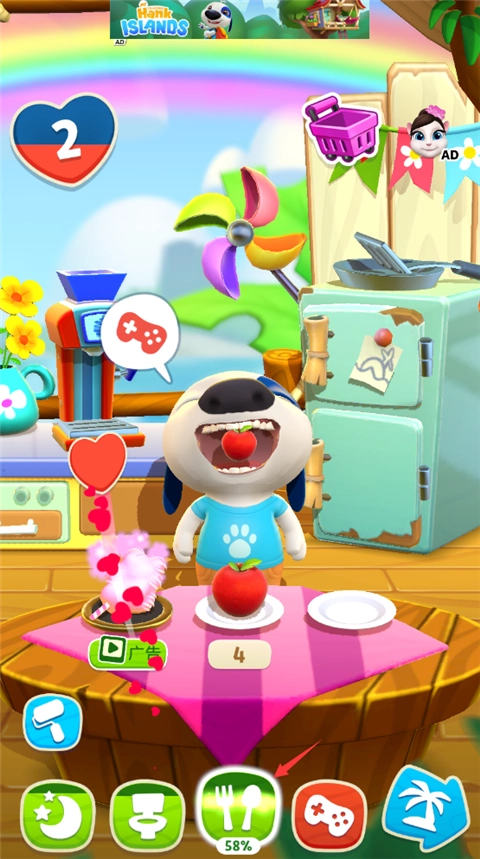 2、这里显示汉克狗饿了,玩家需要移动食物给它吃