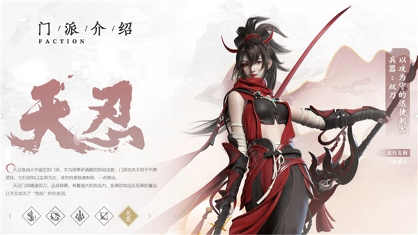 天忍派诞生于战火纷飞的年代,其信奉的是萨满教。和中原武学的路数不一样,天忍门派更看重实战效果,追求的是快速制敌、一击致命的打法。
