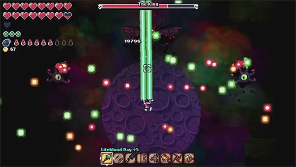 1、核心玩法围绕像素风弹幕战斗展开,玩家需在移动过程中同步发起攻击,整体挑战节奏十分紧凑。