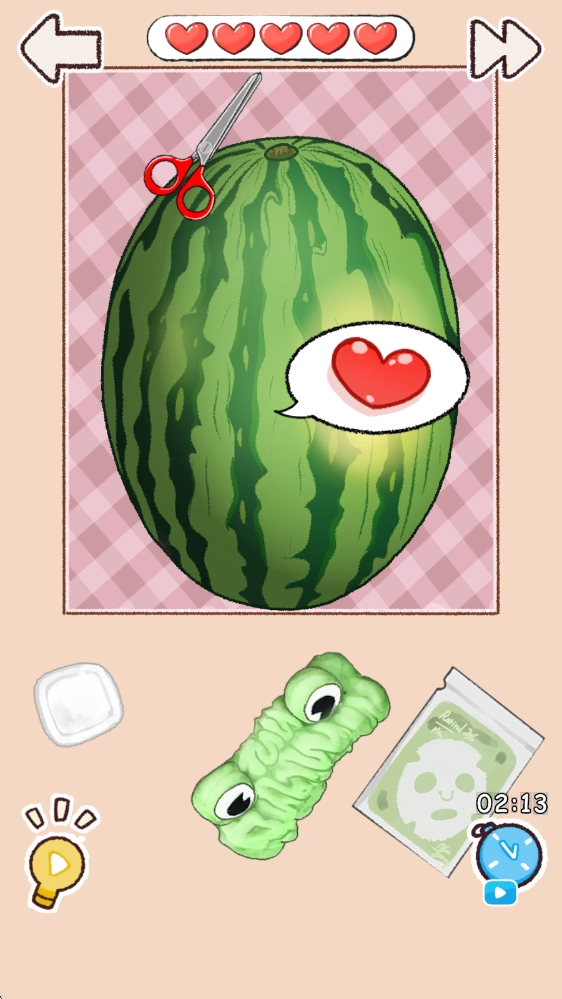 1、以这一关给西瓜化妆为例,首先用湿巾把所有污渍都擦拭干净。