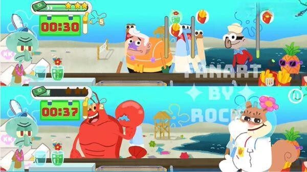 1、游戏里会有许多你熟悉的角色一一亮相,不管是对工作感到厌烦的章鱼哥,还是模样可爱的海绵宝宝,都会在其中出现。