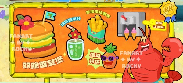4、蟹皇堡是比奇堡最受大家喜爱的美食,玩家得根据每位顾客的口味偏好来制作出美味的蟹皇堡,以此来提高店铺的人气。