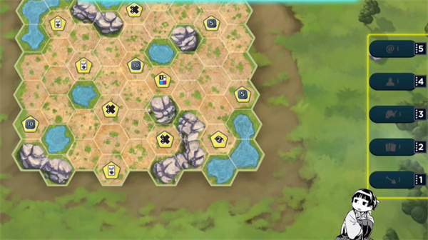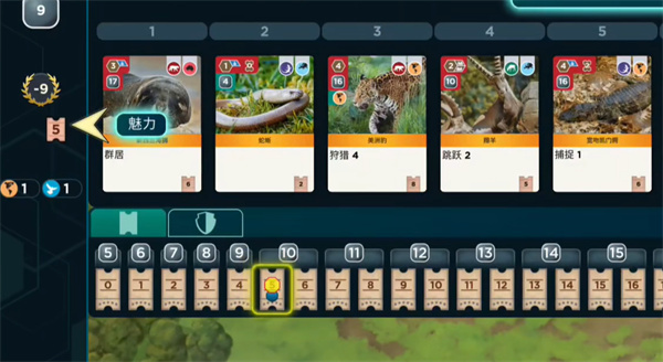 2、每回合可执行5种行动,分别为建造、卡牌、动物、协会和赞助商,这些行动选项在右侧展示。
