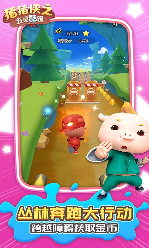 《猪猪侠之五灵酷跑》的跑酷挑战乐趣十足,玩家可以操控猪猪侠参与跑酷,这对操作技术是不小的考验。关卡中会出现各种障碍物,需要玩家自行躲避,同时还要持续前进收集更多金币。游戏采用卡通风格画面,每个角色都十分可爱。