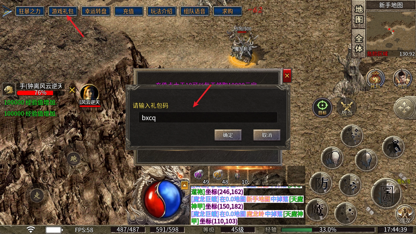 兑换方式:点击页面上方的游戏礼包选项,接着点击输入礼包码的按钮,最后在弹出的输入框中输入对应的兑换码就可以完成兑换了。