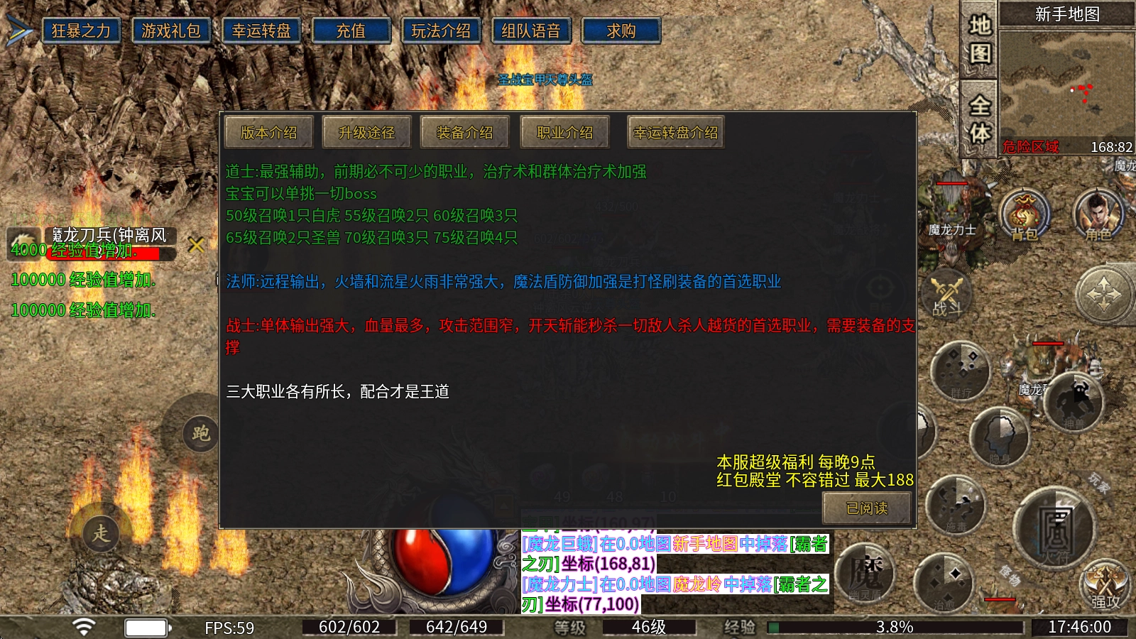 2、法师:作为远程输出职业,其火墙与流星火雨技能威力强劲,搭配防御强化的魔法盾,堪称打怪刷装备的优选职业。
