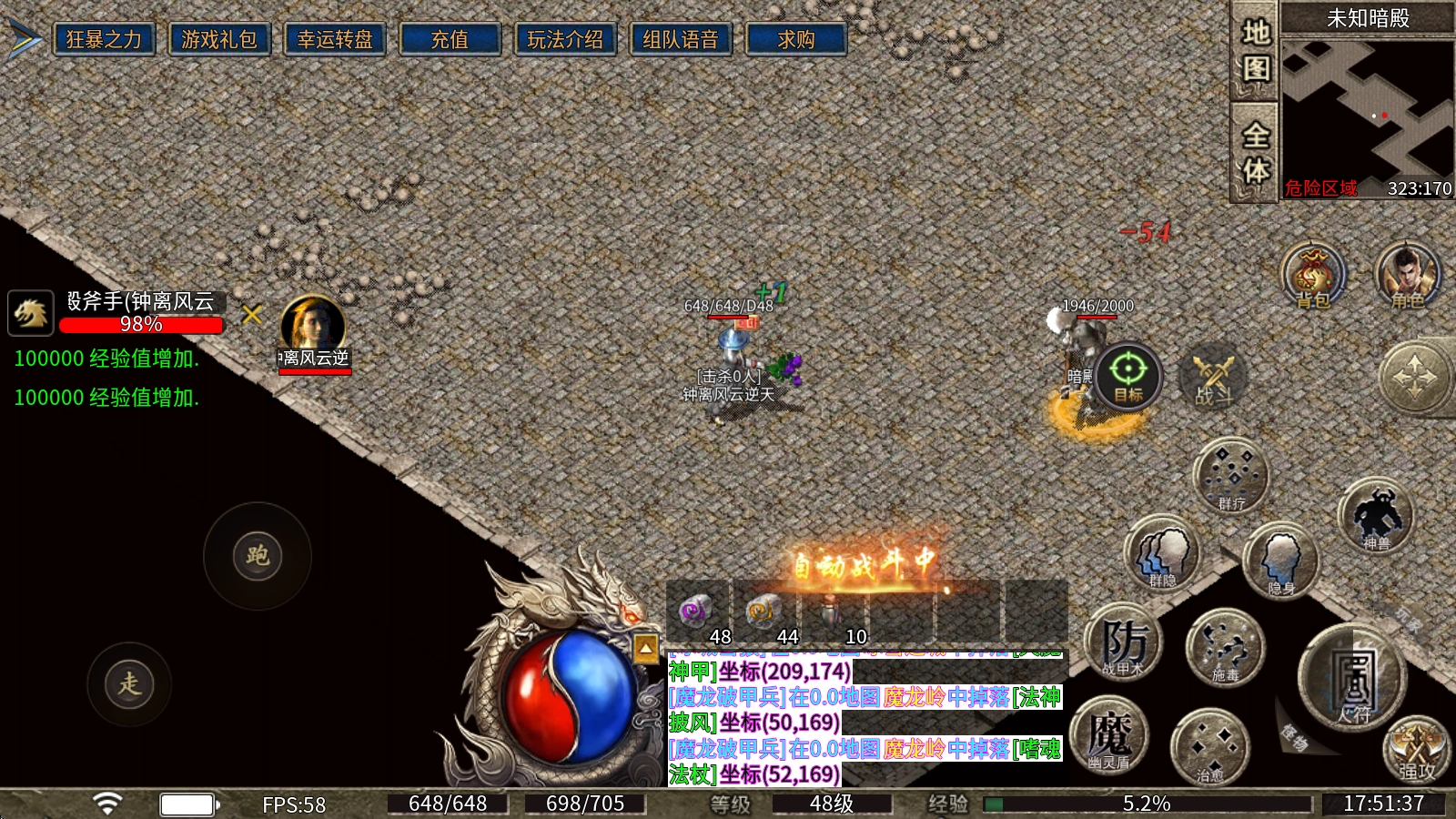 5、装备一旦没有持久度就会失去属性,记得去商店购买修复神水来修复全身装备;另外,回血石要是没了持久,也无法发挥回血效果。