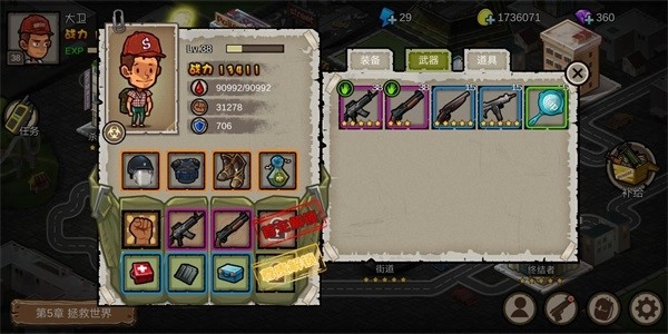 中期阶段:当玩家能稳定通过2-7关获取弹夹后,游戏体验会逐渐改善。此时持续收集弹夹推进关卡,打赢3-3关后,就能通过扫荡该关卡获得大量蓝色装备碎片。同时,大蒜香水也接近合成完成,搭配5星蓝色喷子、5星蓝色冲锋枪和蓝色弹夹,可一口气从3-4关推到5-4关,过程十分顺畅。