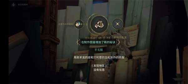 接下来前往鲁内德村庄触发相关剧情,之后返回住所时接到制作羊毛服的任务。随后传送到诺瓦神殿,前往龙之谷与羊羔龙展开战斗。由于我心怀善意,选择放过了它,意外获得了它的皮。最后用这块皮搭配贝利恩的毛,成功合成了所需的羊毛服。