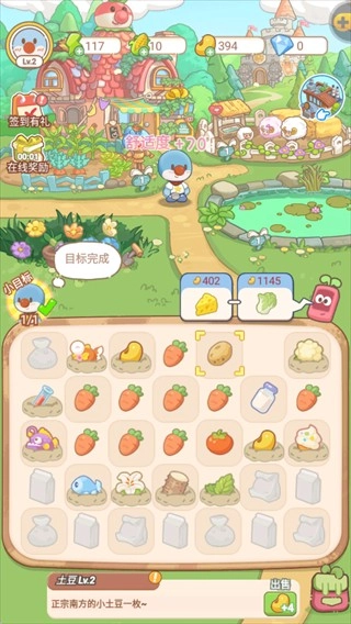 1、游戏前期可通过拖动合并胡萝卜这类作物,解锁模拟经营类的合成玩法。