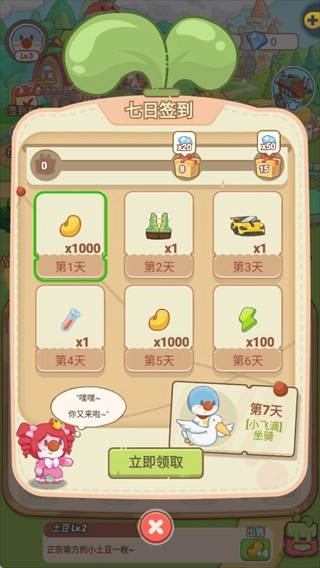 7、参与七日签到活动,就能领取豆子、服饰、坐骑等丰厚奖励,帮助你快速成长。