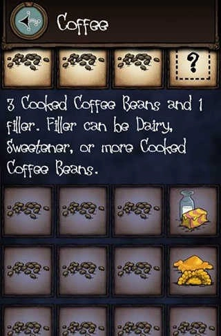 需要3个咖啡豆加一个甜品(黄油、蜂蜜、咖啡豆)