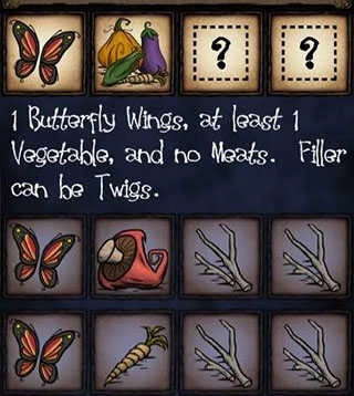 1蝴蝶1蔬菜2填充可以为树枝,不能为肉
