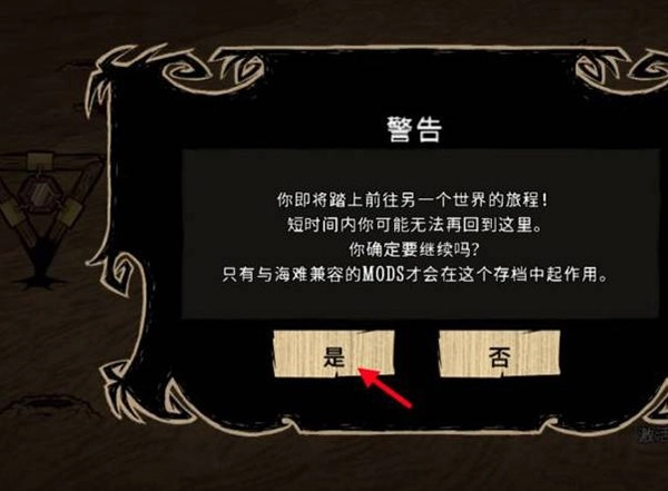 6、海洋之椅摆放好后,点击激活。系统会弹出“警告”提示,点击“是”就能切换到海难地图;若电脑配置较低可能会出现卡顿情况,且不兼容两个DLC的模组将无法使用。