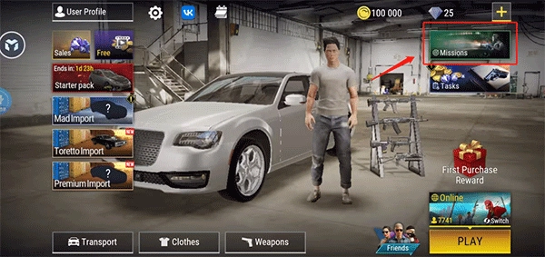 1、进入《火力全开2:城市狂热》游戏后,点击角色身旁的车辆。
