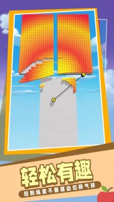 2.玩家能够借助飞绳切割的操作,让小球在画面场景里持续掉落。