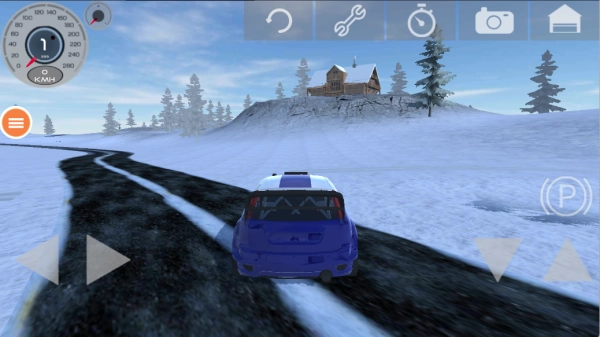 2、在雪地道路中驾驶汽车,玩家要快速启动汽车,自由选择自己的驾驶路线。