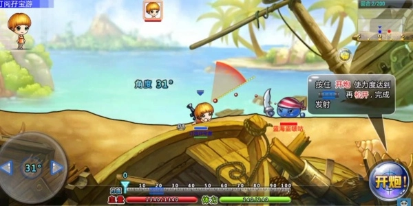 2、在战斗中观察地形与对手位置,调整角度和力度进行攻击。