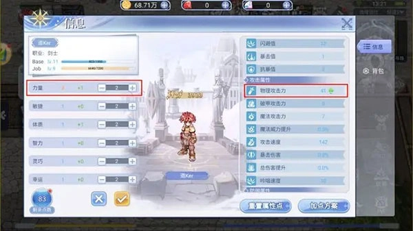 坦白说,这1.8物理攻击力的提升并不多,正因为如此,该属性对于【弓箭手】、【盗贼】这类物理系输出角色而言显得有些鸡肋,在核心加点方面,还是【剑士】职业选择力量属性偏多一点。