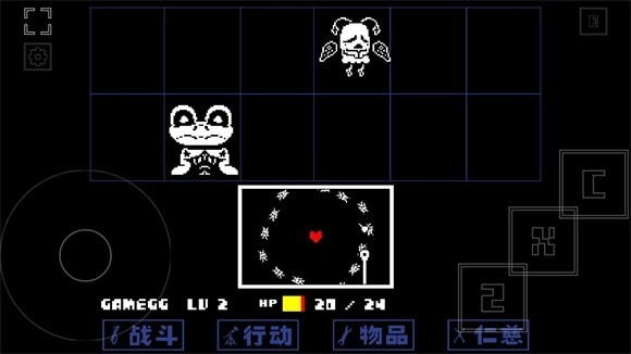 5、敌方攻击阶段需操控红心角色在边框内躲避白色攻击物,避免被击中。