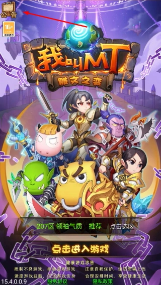 1、进入游戏前,可先点击公告入口了解活动,再选择207区领袖气质推荐点区进入游戏。