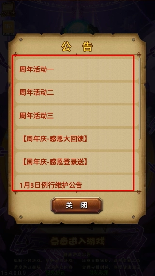 2、进入公告界面后,可查看周年活动系列内容,包括感恩回馈与感恩登录送等活动,明确活动分类。