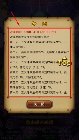 3、查看感恩登录送活动详情,活动时间为1月8日至1月15日,每日登录可领取五火球教主碎片等奖励。