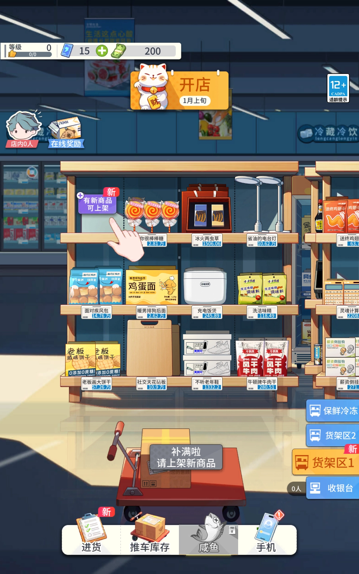 玩家要按时查看货架上商品的库存情况。一旦商品数量低于预设的阈值,系统就会提示玩家进行补货操作。