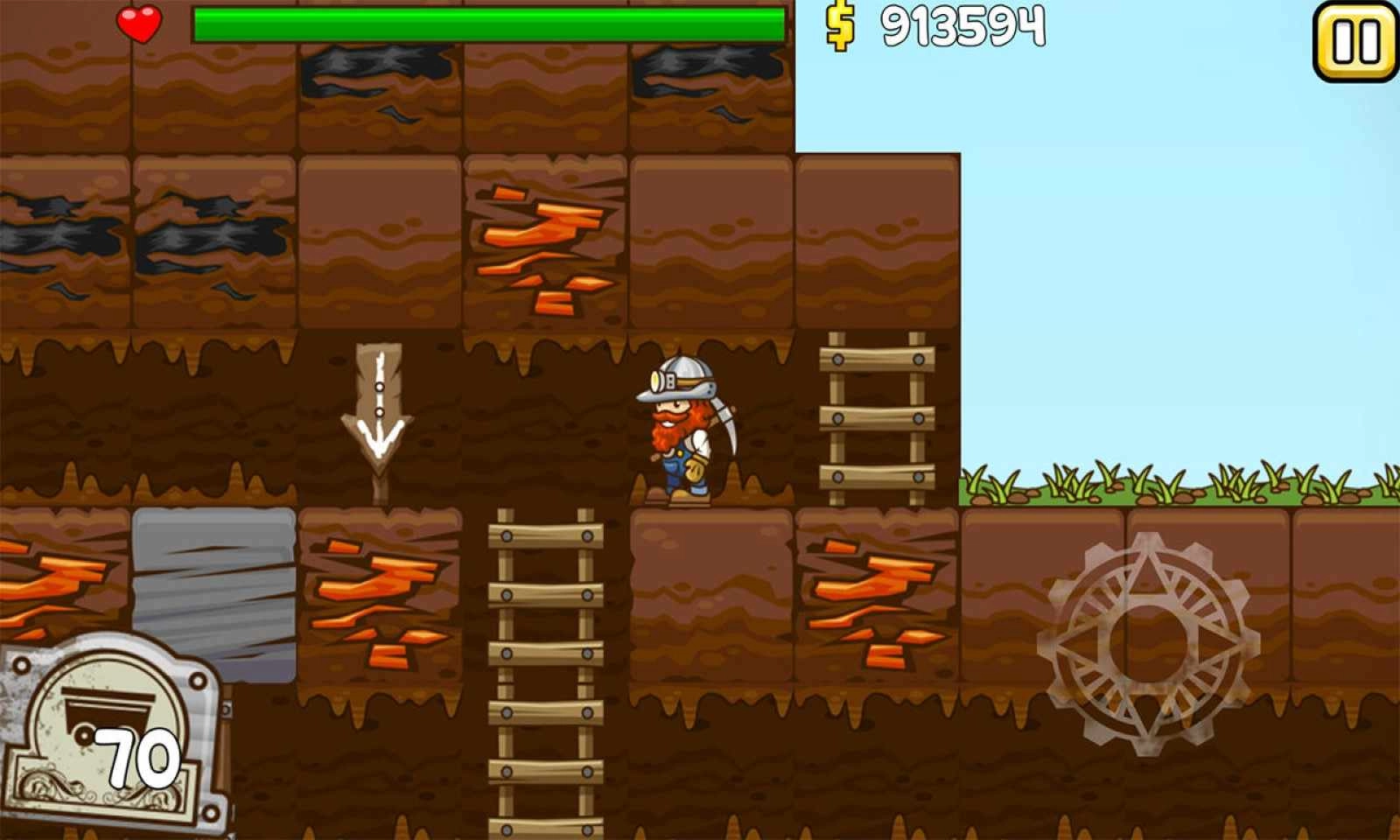 小小矿工中文版正版是一款纯休闲趣味类的单机,采用的是经典的2D横版像素风格画质,搭配上无比轻快的音乐,使玩家们玩起来非常的舒适。玩家在游戏中需要做的就是使用摇杆操控自己的矿工下到矿底下,然后不断的挖掘矿洞底下的土块和矿物,目的就是为了找到更多的金矿,并且游戏的操作简单到极致,只需要点击方向键控制角色移动,点击场景中的土块就能进行挖掘,而且在地下大家还会遇到很多的好玩道具,可以开着有着大钻头的钻机一直往下挖很久,不过矿工是有耐力条的,如果在耐力掉光之前没有返回上面就失败了,同时还要注意悬挂在头顶的巨石哦,它也是一个潜在的危险。