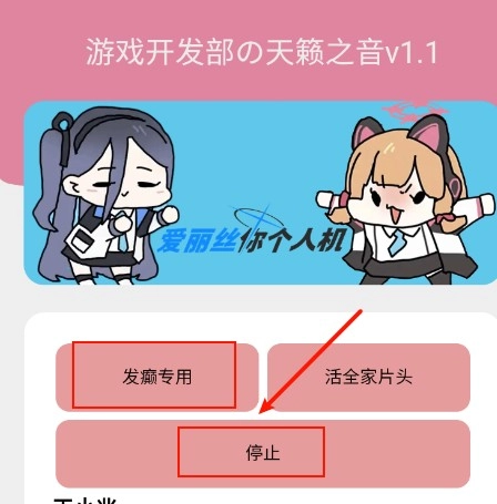 点击“发癫专用”按钮就能开启发声功能,点击停止操作则会关闭该功能。