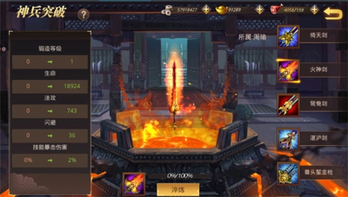 当武器成功提升至橙色品质后,可通过武将属性界面右下角的“神兵”入口进入对应界面进行淬炼操作,只有完成正式淬炼流程,才能真正拥有该神兵。