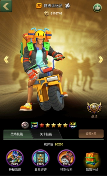 特技派送员是一位支援能力超棒的S级军官,他掌握着神秘派送、五星好评、神秘佐料和饥饿补给这四个超厉害的技能。有了他,就好比身边多了个能在你饿得肚子咕咕叫时提前把吃的送到的外卖小哥,那感觉简直不要太安逸!