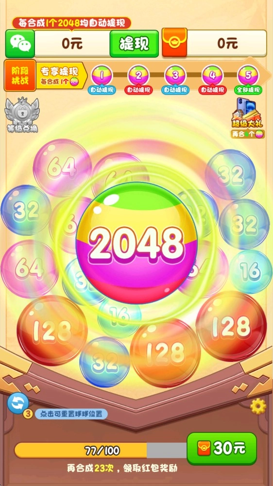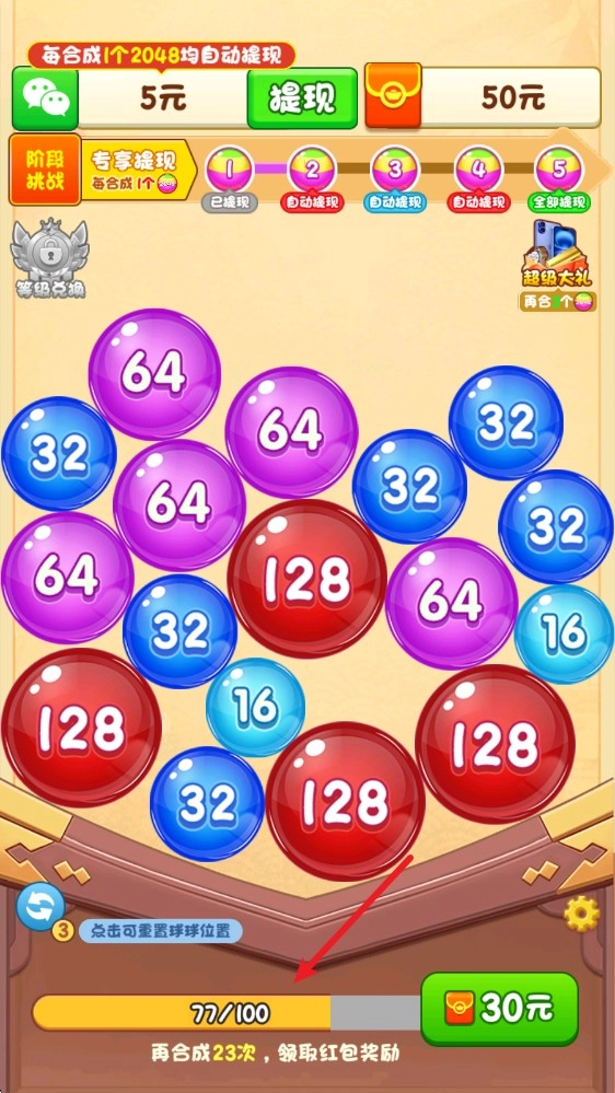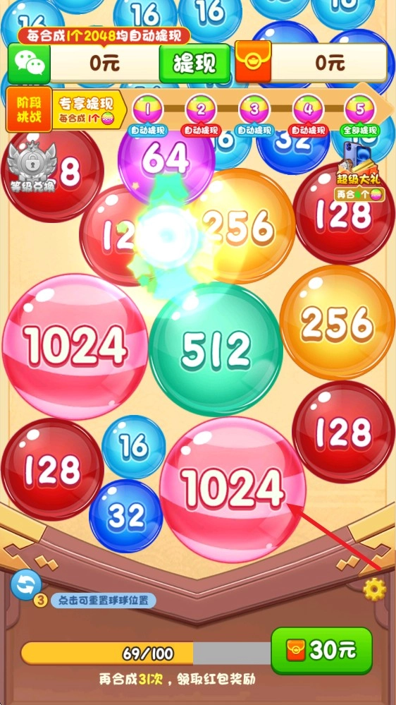 游戏里有不少道具,你可以借助这些道具来辅助完成2048小球的合成玩法。